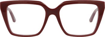 Step up your eyewear game with these chic square optical glasses detailed with designer accents at the temples.