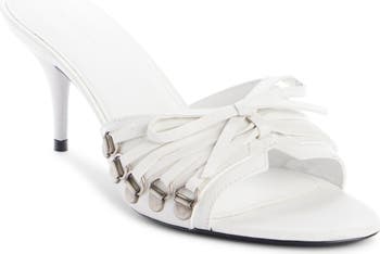 Hiking-inspired speed lacing details the vamp of this Italian-made slide sandal elevated on a slender heel.