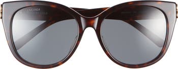Exude confidence in these designer sunglasses shaped in an retro-reminiscent cat-eye silhouette with gleaming double-B temple accents.