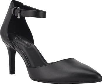 A pointy toe and slim ankle strap refine the look of this sleek and modern pump.