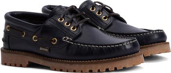 Feel steady on your feet, whether on land or at sea, in this leather boat shoe featuring built-in arch support and a sturdy lug gum sole.