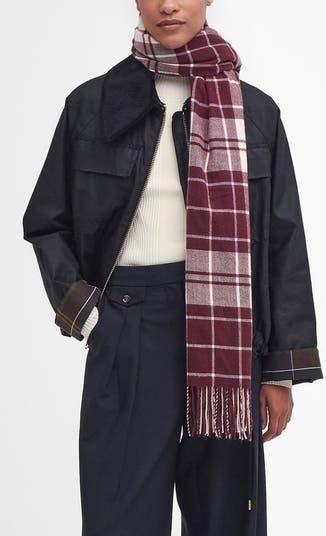 Signature tartan enriches a charming tassel-trimmed scarf with indelible appeal.