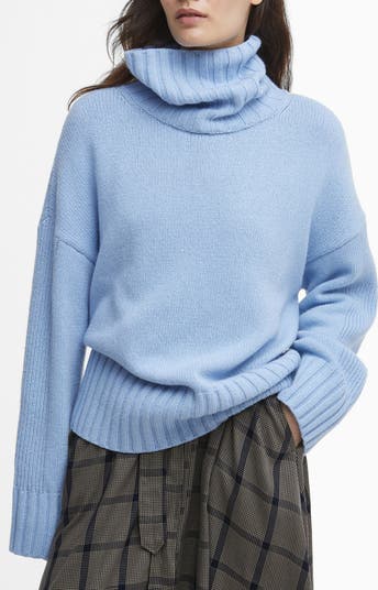 A roomy fit and chunky stitchwork kick up the cozy factor for a staple sweater knit from a blend enriched with cotton and wool.