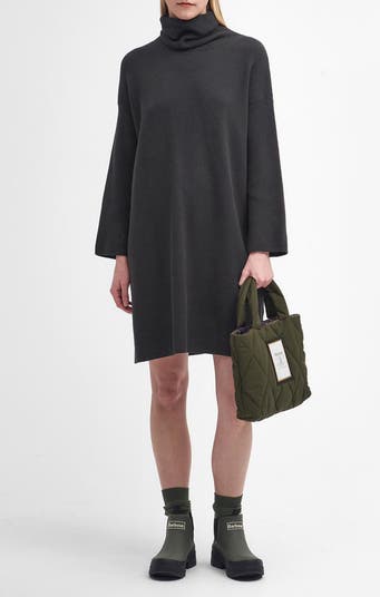 Feel wonderfully cozy all day long in this turtleneck sweater-dress that envelops you in the softness of cotton-blend yarns knit in an oversized silhouette that's enhanced by the drop-shoulder styling.