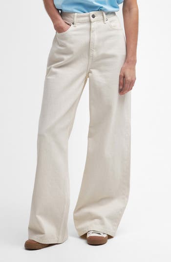 Refresh your laid-back essentials with these high-waisted jeans cut from nonstretch denim in an ivory wash.