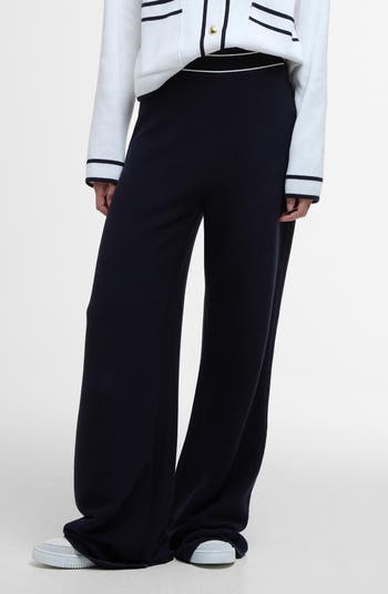 Level up your laid-back look in wide-legged pants crafted in a textured cotton knit and traced with contrast trim at the waist.