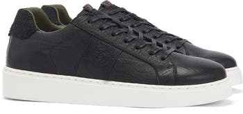Give a casual kick to work-ready looks in a sleek leather sneaker that's padded at the collar.