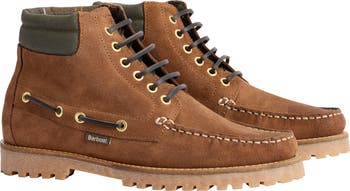 Rawhide laces enhance the rustic style of this workwear-inspired suede boot constructed with a lightly padded collar and durable lugged sole.