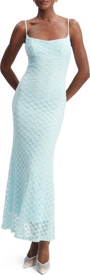 Slink into your next soirée in this midi-length slipdress wrapped in a gorgeous garden of embroidered blooms.