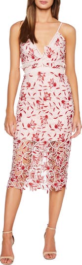 Dainty ruffles detail the bodice of this lace midi lined only to mid-thigh for a behind-the-lace view of your lovely legs.