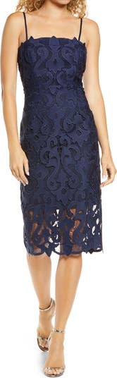 This simple stunner of a sheath makes the case for lace with a mini-length lining that lets the design pop against your alluringly neutral lovely legs.