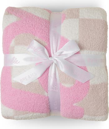 Feel like you're in Barbie's dreamworld when you snuggle up in this supersoft throw blanket made from the brand's plush signature knit.