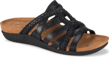 Crisscross braided straps bring easy, breezy style to this sun-ready sandal finished with a contoured, cushioned footbed and a traction sole.