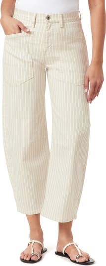 Patch pockets enhance the retro vibe of high-waisted ankle pants cut from stretch-cotton in a barrel-leg silhouette.