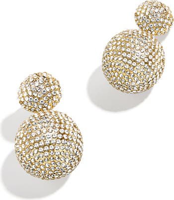 Light up your lobes with the double-bauble design of these drop earrings that shine with a gleaming finish and brilliant crystal pavé.