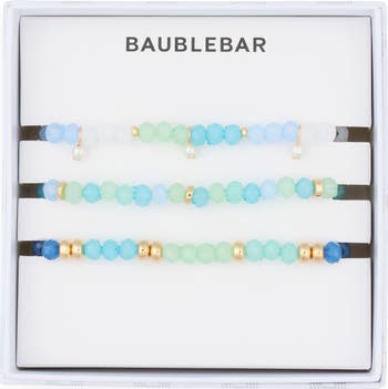 A trio of assorted stretch bracelets are strung with bright and colorful beads to embolden your everyday looks.