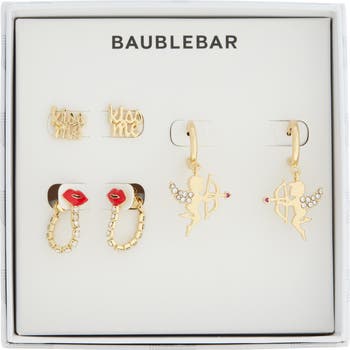 Get the look of love with this set of three pairs of gleaming earrings that will perfectly mix and match with outfit choices.