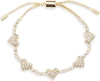 Pavé crystal hearts bring romantic sparkle to this box-chain slider bracelet boasting a high-shine finish.