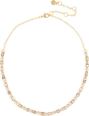 Bezel-set crystals in mixed cuts illuminate this dainty collar necklace that brings instant sparkle to any look.