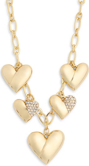 Pavé CZ brings dazzling sparkle to the puffy heart charms of a cable-chain necklace.