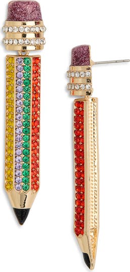 Get ready to head back to class with these colorful pencil stud earrings with rows of shining crystals.