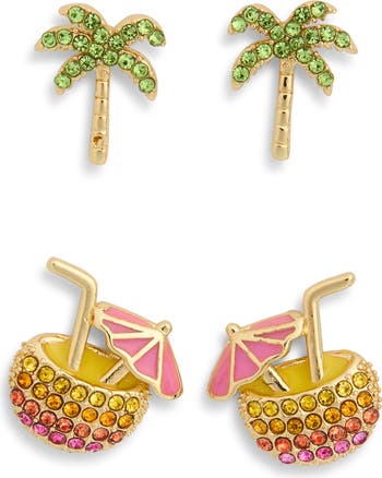 Whimsical stud earrings shimmer with sparkling CZ stones shaped into playful vacation-inspired motifs for a fun, summery finish.