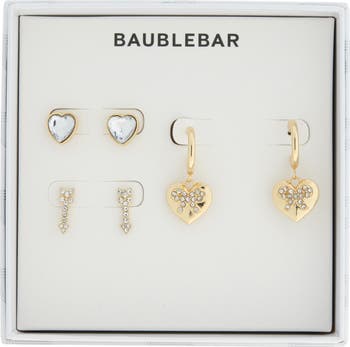 Mix and match with this set of three earrings featuring heart and arrow designs inset with twinkling crystals.