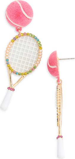 Get ready for your next match in style or ace your gift giving with this pair of tennis racket drop earrings embellished with glimmering cubic zirconia.