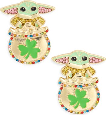 Celebrate Saint Patrick's Day (or any day) in festive style with these stud earrings featuring your favorite Mandalorian character, Grogu.