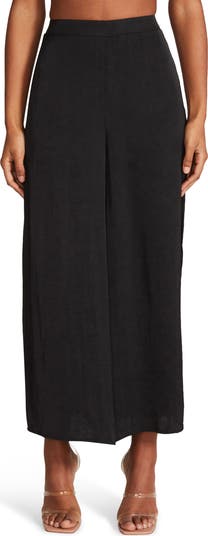 Dramatic side slits accentuate the wide-leg silhouette of these outfit-making trousers.