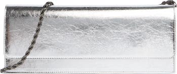 A bright metallic finish lends eye-catching appeal to a party-ready clutch that comes with an optional chain strap to mix up your carry style as needed.