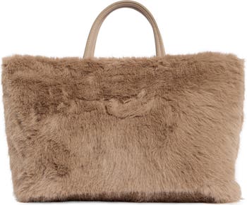 A spacious, well-organized interior and included pouch ensure there is a spot for all essentials and extras in this tote bag crafted from plush faux fur.