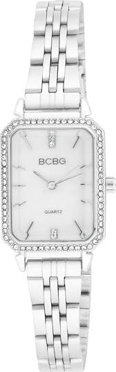 Bright-white crystals shine along the octagonal bezel of a sophisticated timepiece done in a high-shine finish to illuminate your everyday stack.
