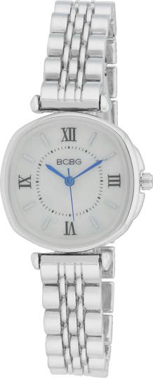 Show off elegant shine with this polished bracelet watch featuring an oval case with precise three-hand movement and Roman numeral indexes.