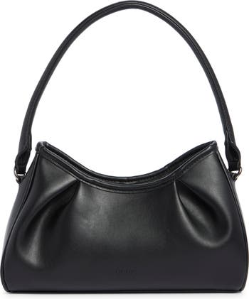 Dramatic pleats define the silhouette of a compact bag topped with a polished shoulder strap for hands-free styling.