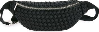 A quilted woven texture distinguishes this belt bag that features multiple zip pockets for easy organizing.