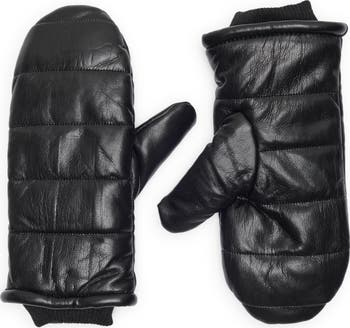 Elevate your chilly-weather look while keeping hands toasty in these quilted puffer mittens finished with a rib-knit cuffs.