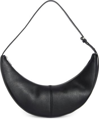 The crescent silhouette of a compact shoulder bag features an adjustable shoulder strap and just enough space for your day-to-day essentials.