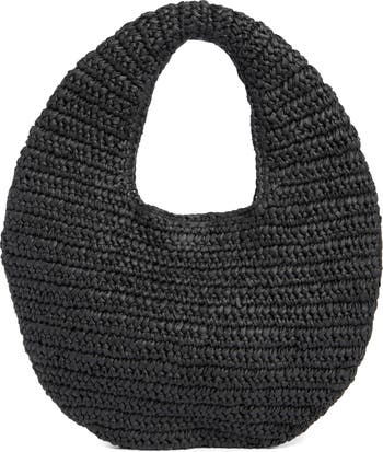 This stylish shoulder bag features a woven raffia design featuring an integrated shoulder strap for a standout silhouette.