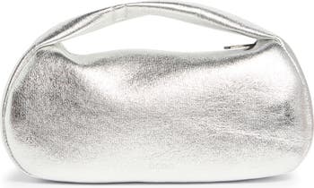 A silvery metallic finish lends party-ready vibes to a hobo bag that features a sized-down interior with room for essentials only.