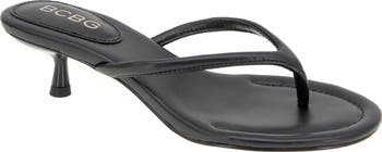 A slender Y-shaped thong strap frames the simple vamp of a slide sandal crafted with a low kitten heel for an effortless finish.