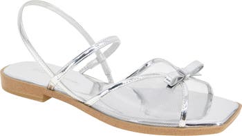 A delicate vamp bow centers the mesh side panels on a cushioned sandal fitted with elasticized ankle and slingback straps that provide a secure fit.