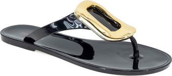 Refresh your warm-weather selection by adding this flip-flop to the mix done with a jelly-like upper framed by polished bit hardware that brings a touch of shimmer and shine to every stride.