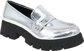 A heavy lug sole grounds the chunky platform and block heel of a retro-inspired penny loafer that will elevate your trendsetting style.