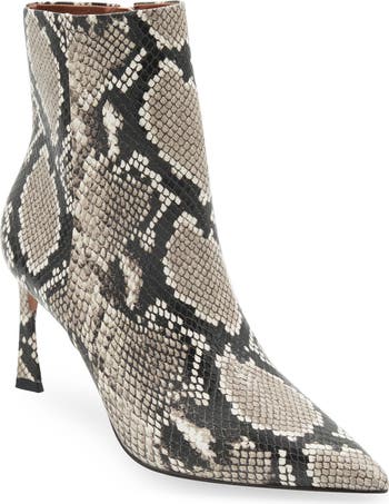 A pointy toe and sculpted heel frame a statement-making leather bootie that will elevate your trendsetting style.