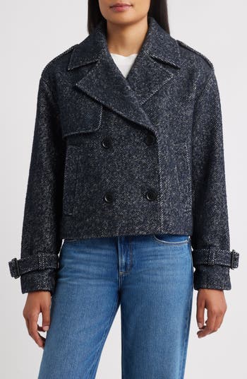 The classic peacoat is refreshed in a boxy, cropped silhouette with this trench-inspired version lightly kissed with warming wool fibers.