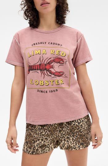 A cute crustacean graphic animates a relaxed drop-shoulder T-shirt made from washed cotton and designed with exposed seams for a vintage-inspired vibe.