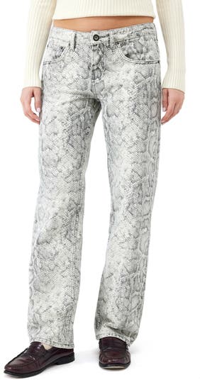 Snake Print Low Rise Relaxed Straight Leg Jeans