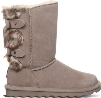 Adjustable straps and burgeoning faux fur trim decorate the back of this comfortable pull-on boot. Sizing: True to size. Whole sizes only; for 1/2 sizes, order next size up. M=standard width. - Round toe - Suede construction - Adjustable strap shaft detail - Faux fur trim and lining - Pull-on style - Cushioned footbed - Foam midsole - Grip sole - Approx. 8" shaft height, 11" opening circumference - Imported