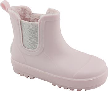 Fluffy faux shearling lines this kid-approved rain boot outfitted with a durable traction grip sole and stretchy gore insets with extended pull-tab.